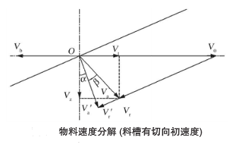 根據(jù)上圖進(jìn)行速度合成及分解,可得到物料各分速度的表達(dá)式: