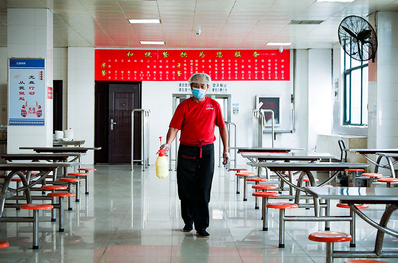 2.嚴(yán)格對(duì)各個(gè)場所的管理,辦公室、車間、食堂各場所定時(shí)打掃消毒、全時(shí)通風(fēng),避免人員聚集,工作全程佩戴口罩,員工分時(shí)分散用餐。