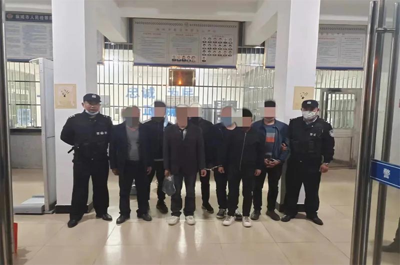 民警得知這一情況后,迅速成立專項(xiàng)調(diào)查組展開(kāi)行動(dòng)。通過(guò)調(diào)查取證,民警掌握了該采砂團(tuán)伙的大量證據(jù)。2021年10月30日,麻城警方雷霆出擊,成功抓獲了以肖某為首的團(tuán)伙成員共9人,現(xiàn)場(chǎng)扣押鏟車兩臺(tái),對(duì)講機(jī)四部,一舉將這個(gè)長(zhǎng)期盤(pán)踞在新洲、鐵門、歧亭、宋埠、中館驛一帶的盜砂犯罪團(tuán)伙抓獲。