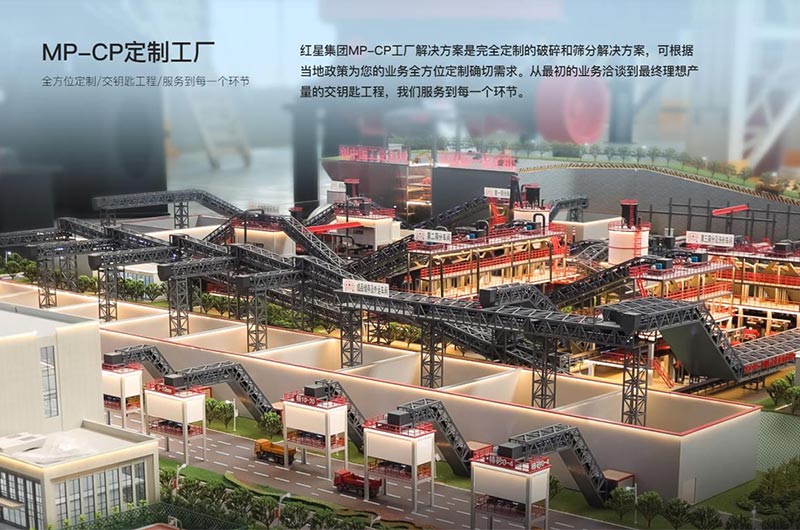 紅星集團(tuán)MP-CP工廠解決方案是完全定制的破碎和篩分解決方案,可根據(jù)當(dāng)?shù)卣邽槟臉I(yè)務(wù)全方位定制確切需求。從最初的業(yè)務(wù)洽談到最終理想產(chǎn)量的交鑰匙工程,我們服務(wù)到每一個環(huán)節(jié)。