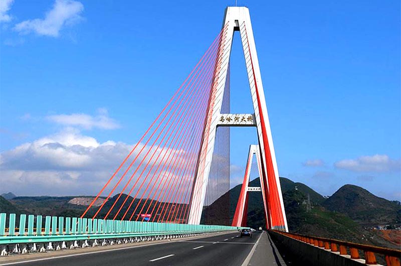 貴州省第一座雙塔斜拉橋——馬嶺河大橋,位于貴州興義市頂效經(jīng)濟(jì)開發(fā)區(qū),跨越馬嶺河峽谷風(fēng)景名勝區(qū),是汕昆高速公路貴州境內(nèi)板壩至江底段重要控制性工程。據(jù)悉,該項(xiàng)目也是全國(guó)第一次在斜拉橋高墩泵送及主梁中使用機(jī)制砂粉煤灰混凝土。
